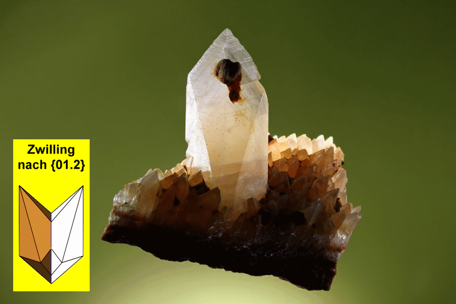 4. Calcitzwillinge von Avesnes-sur-Helpe Die Calcitzwillinge werden mit Kristall2000 nach dem selteneren Zwillingsgesetz {01.2} interpretiert.