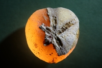 Viele Fossilien zeigen auf der Oberfläche der Steinkerne verkieselte Elemente. Bei dem Muster wiederholt sich auf den Fossilien regelmäßig ein Ring um Öffnungen und Wülste bei Kanten oder Rissen in der ursprünglichen Schale. Zwischen diesen Anordnungen erscheint das Muster z.B. auf Micrastern, sinngemäß wie ein Fingerabdruck, immer in einer anderen Anordnung aus konzentrischen Ringen und Schlaufen. Es handelt sich dabei um sogenannte Buch‘sche Kieselringe. Diese entstanden durch Selbstorganisationsprozesse, als die Kalkschale durch Kieselsäure ersetzt wurde. |